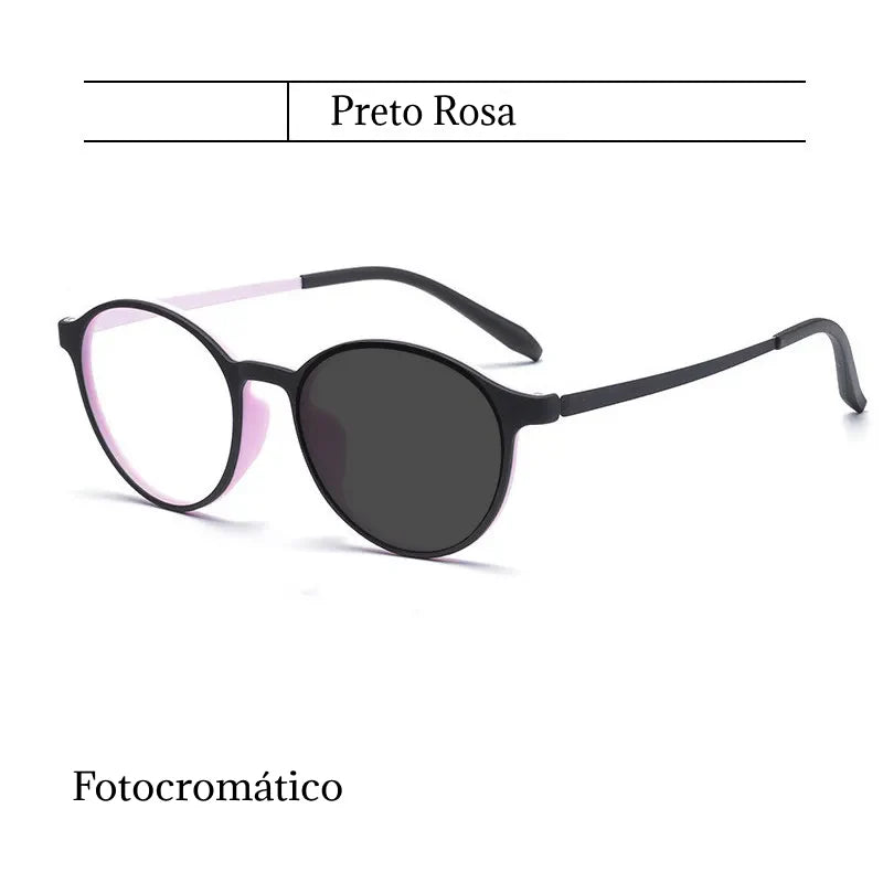 • Proteção Contra Luz Azul: As lentes bloqueiam a luz azul nociva, ideal para quem passa longas horas em frente a telas, ajudando a reduzir o cansaço e protegendo a visão.